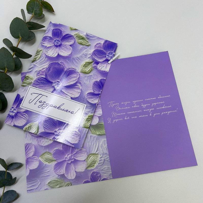 Открытка-Поздравляю ( сиреневая)