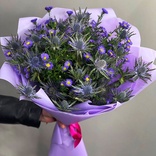 Букет "Звездочет" из эрингиума и астера
