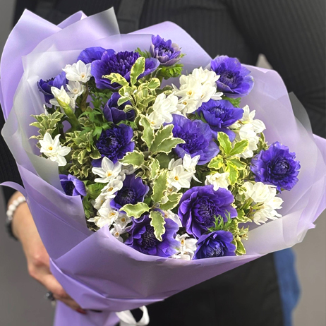 Букет "Виена" их анемонов, нарциссов и питаспорума