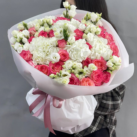 Букет "Всё ещё будет.." из гортензий, эустом и роз Джумилия