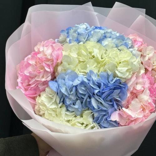 Букет из 7 разноцветных гортензий
