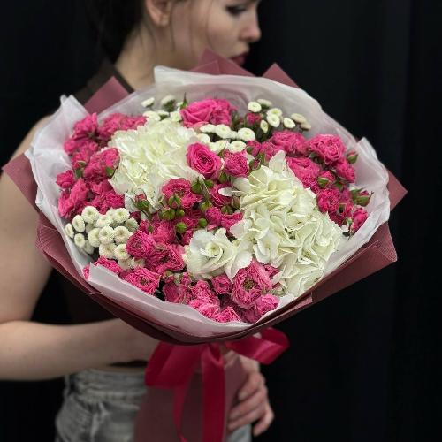 Букет " Мелодия чувств" с розами, гортензиями и хризантемой