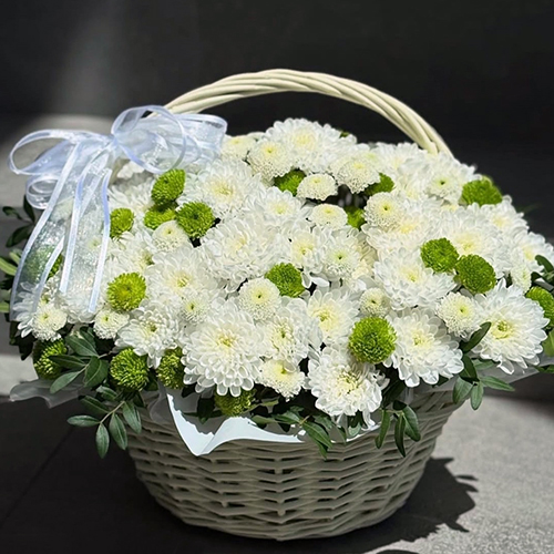 Композиция в корзине "Счастье в мелочах" из хризантем