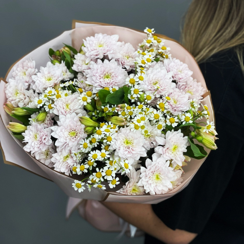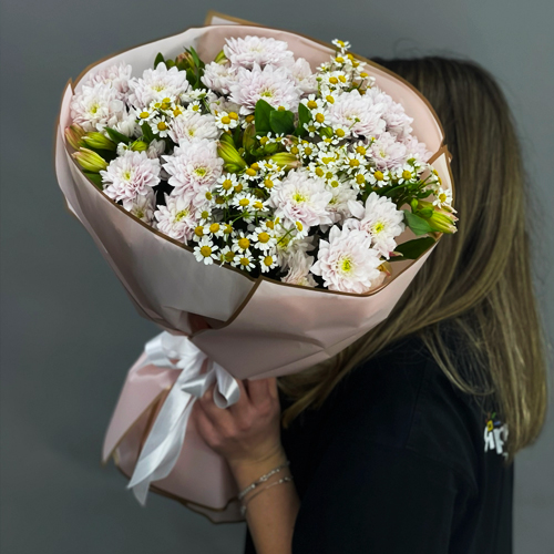 Букет "Сиэтл" из хризантем, альстромерий и ромашек
