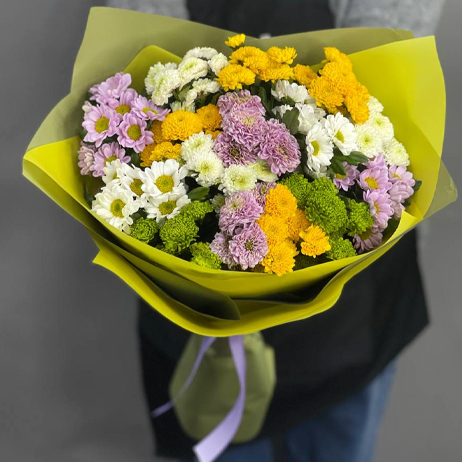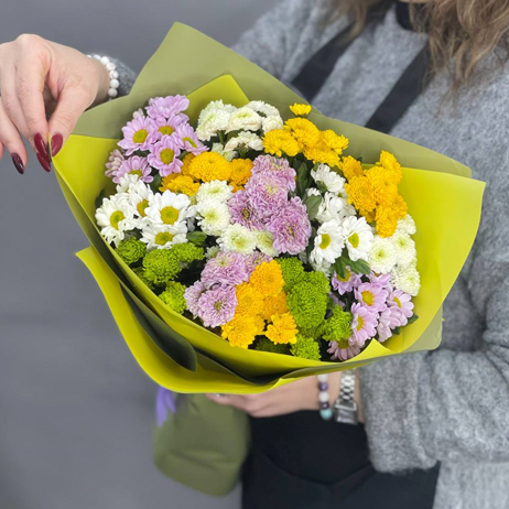 Букет "Поздравляю" из 15 хризантем сантини микс