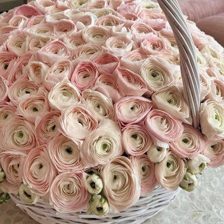 Композиция в корзине "Роскошь бутиков" из 101 ранункулюса