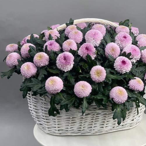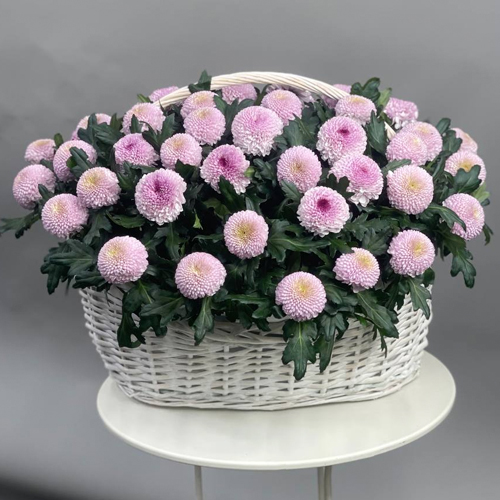 Композиция в корзине из 51 хризантемы Момоко