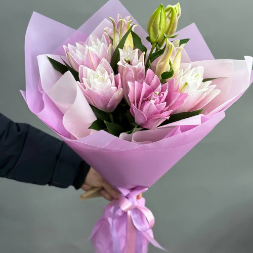 Букет из 5 пионовидных лилий