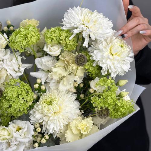 Букет "Мохито" с орхидеей, хризантемой, эустомой и вибурнумом
