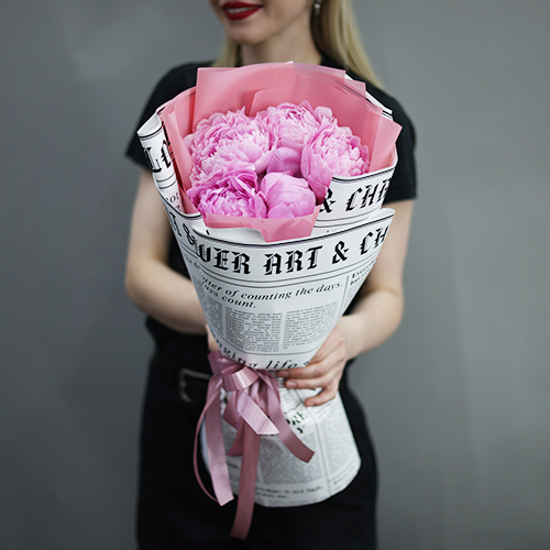 Букет из 5 розовых пионов Сара Бернар
