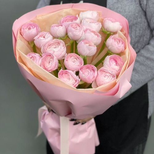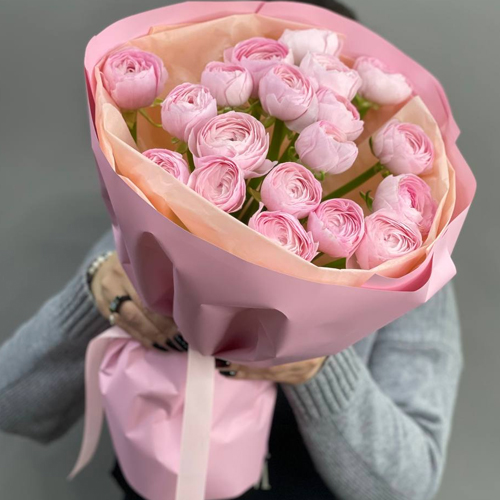 Букет из 21 розового ранункулюса