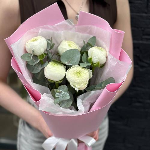 Букет-комплимент из 5 белых ранункулюсов