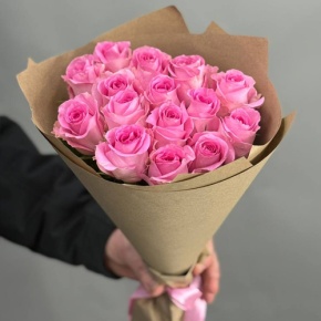 Букет 15 Кенийских розовых роз (40 см)