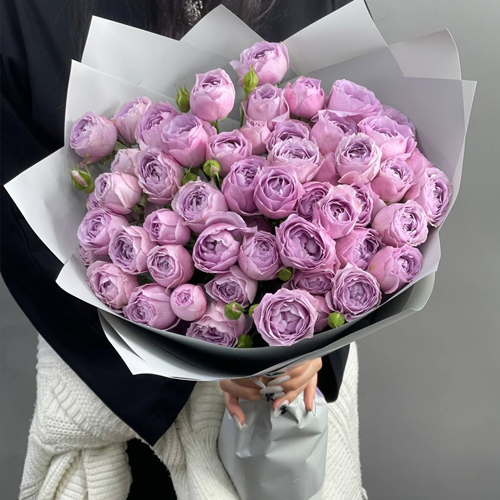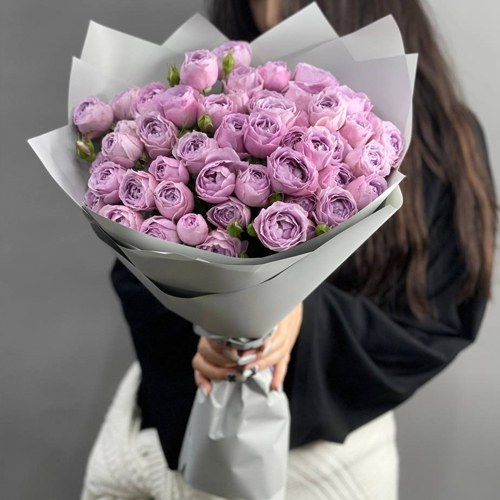 Букет "Лавандовый латте" из 11 кустовых пионовидных роз (50 см)
