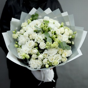 Букет "Маскарпоне" из роз, диантусов, эустом и гиперикума