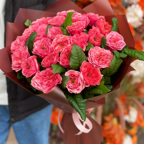 Букет из 25 махровых пионовидных роз Риджентс парк (60 см)