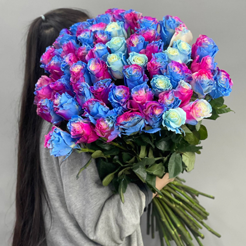 Букет "Радуга" из 51 розы Эквадор под ленту (70 см)