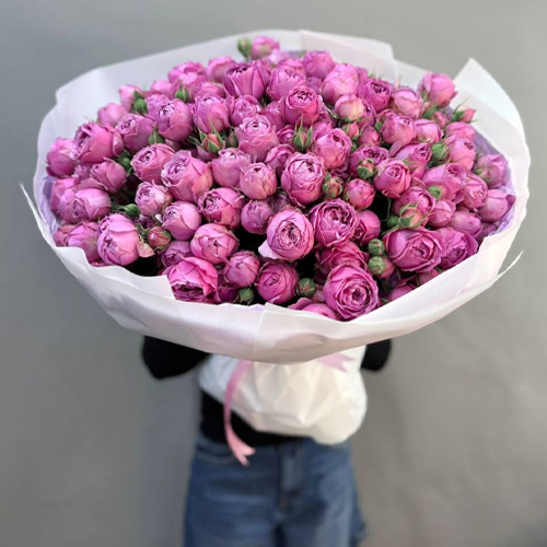 Букет из 25 пионовидных кустовых роз Мисти Баблз (60 см)