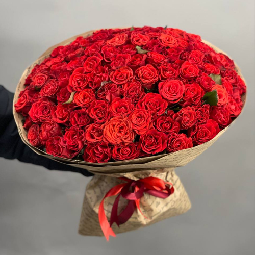 Букет 101 красная роза Эль Торо в крафте (40 см)