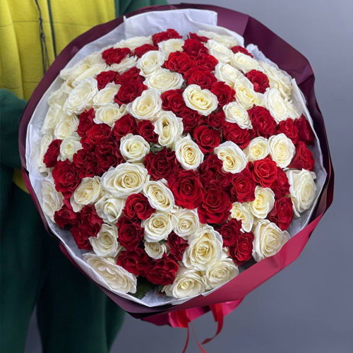 Букет "Поцелуй Амура" из 101 розы Эль Торо и Аваланж (50 см)