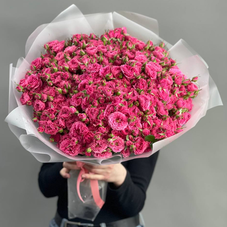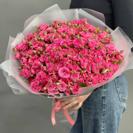 Букет "Тиффани" из 35 малиновых кустовых роз (50 см)