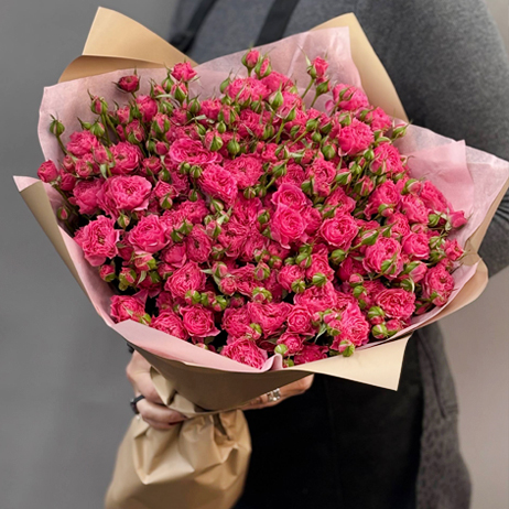 Букет из 21 малиновой кустовой розы (50 см)