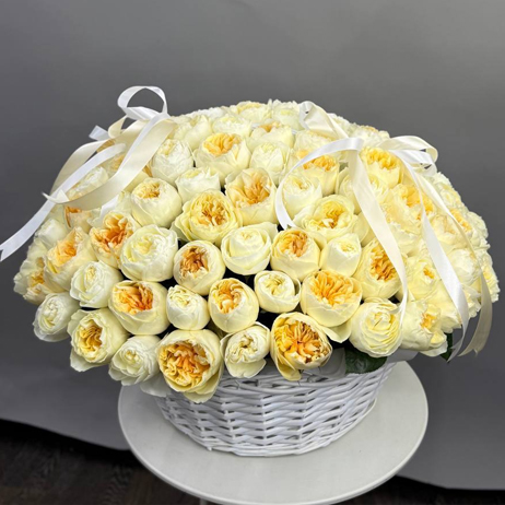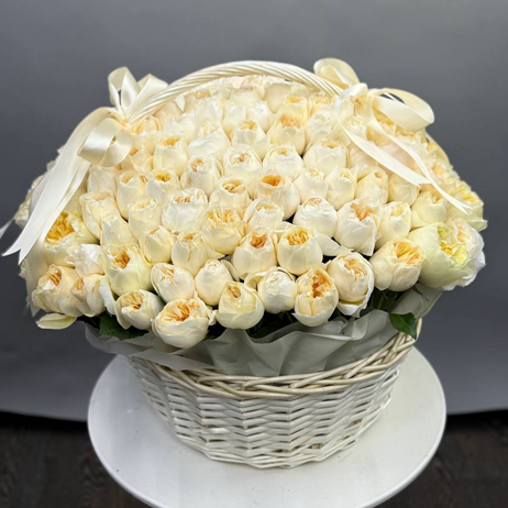 Композиция в корзине из 151 Эквадорской пионовидной розы
