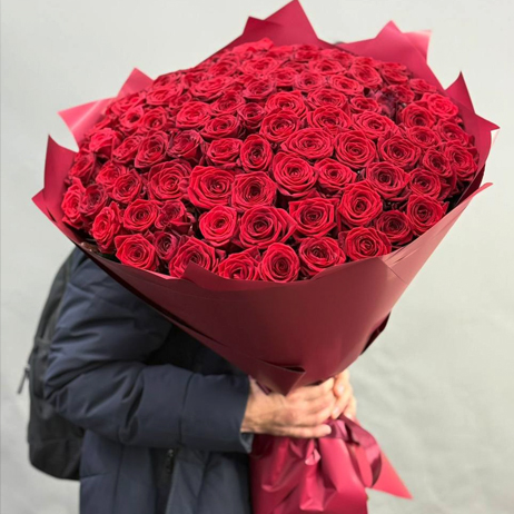 Букет "Бордо" из 101 красной розы (70 см)