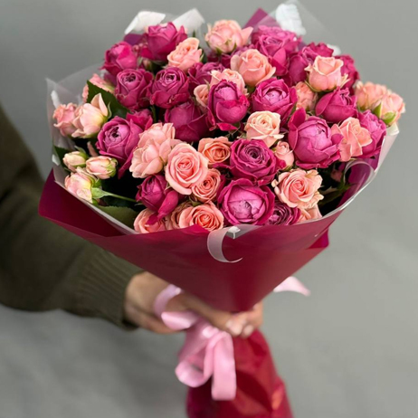 Букет из 11 кустовых роз микс (50 см)