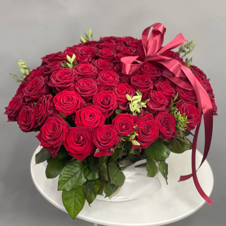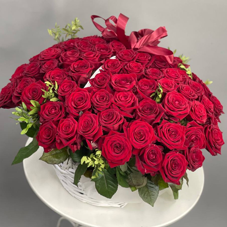 Композиция в корзине из красных роз