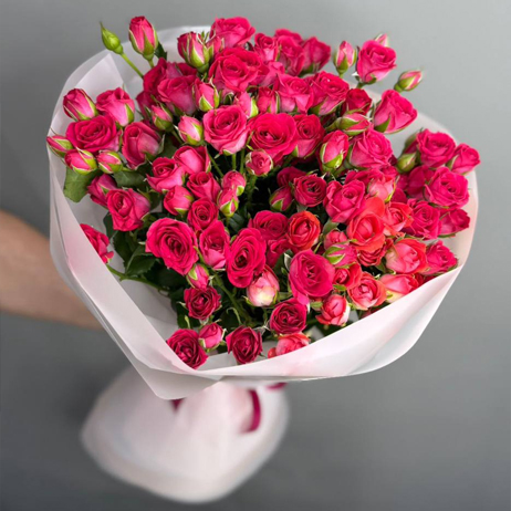 Букет из 11 малиновых кустовых роз (50 см)