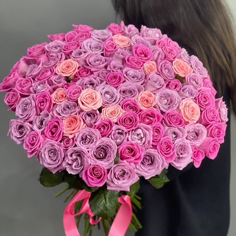 Букет из 101 розы микс Меритим и Аква и Софи Лорен (60 см)