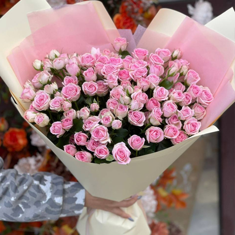 Букет "Кабаре" из 25 кустовых розовых роз (70 см)