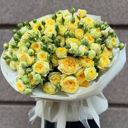 Букет "Сенди" из 21 лимонной кустовой пионовидной розы (60 см)