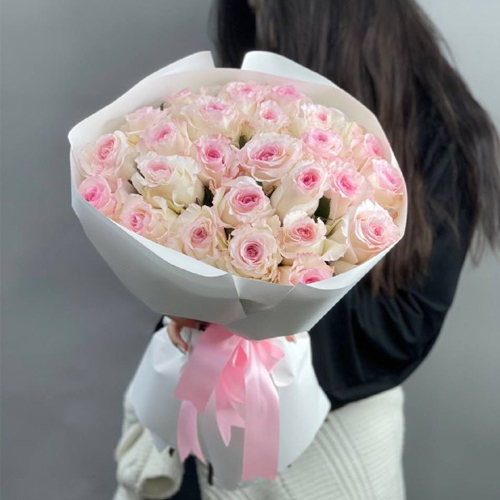 Букет из 25 нежных пионовидных роз Эквадор (60 см)