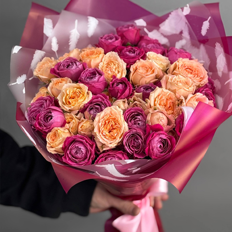 Букет из 11 кустовых пионовидных роз Марвелоус Баблз микс (50 см)