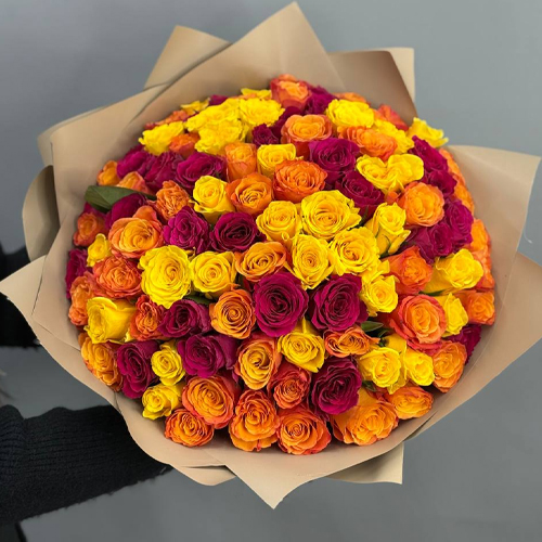 Букет "Яркое впечатление" из 101 розы микс (40 см)