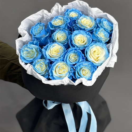 Букет "Блу скай" из 15 голубых роз Эквадор (60 см)