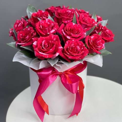 Композиция в шляпной коробке из роз Эквадор