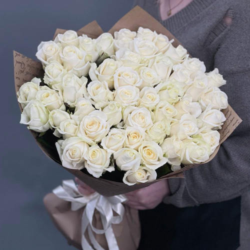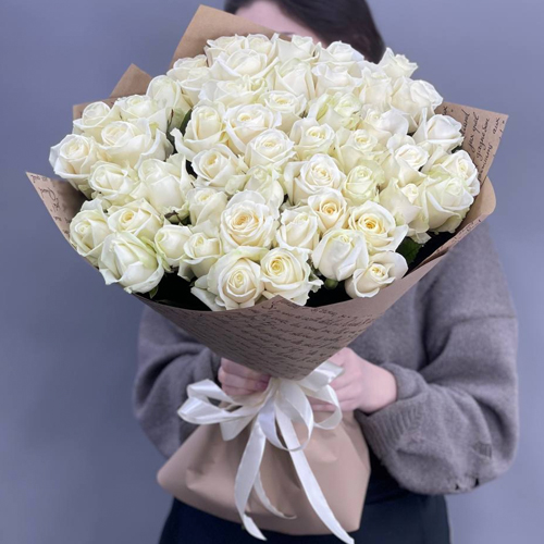 Букет из 51 белой розы в крафте (60 см)