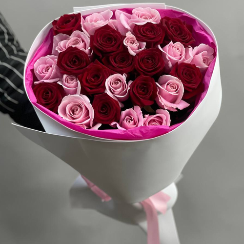 Букет из 25 роз Аваланж и красных роз микс (60 см)
