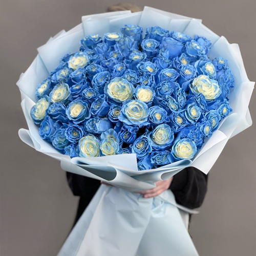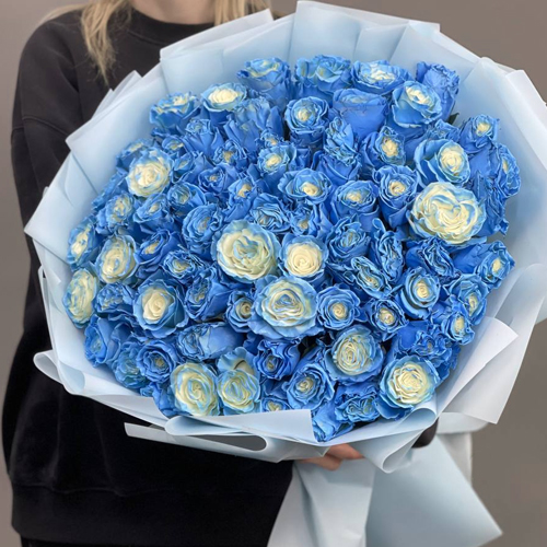 Букет "Алмаз" из 75 голубых роз Эквадор (60 см)