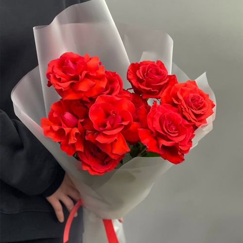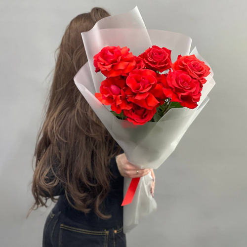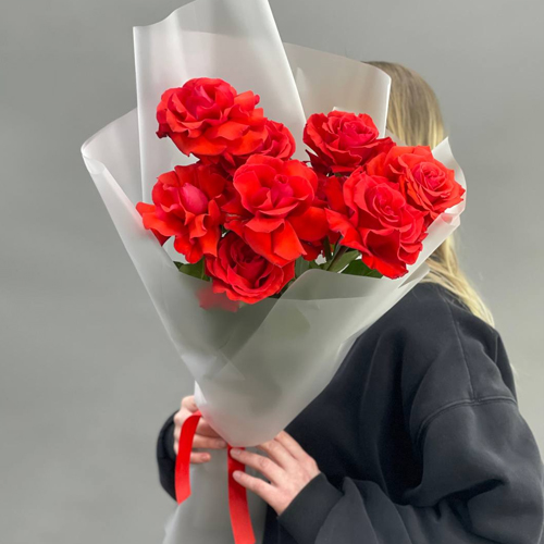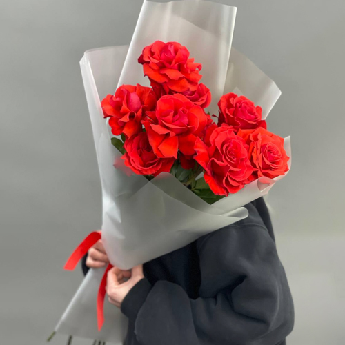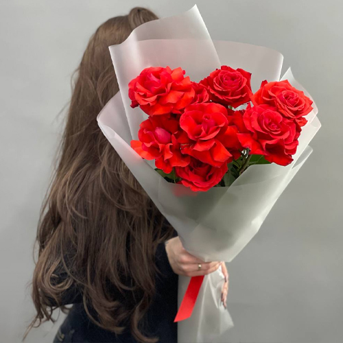 Букет "Пламенный поцелуй" из 9 французских роз Эквадор Нина (60см)