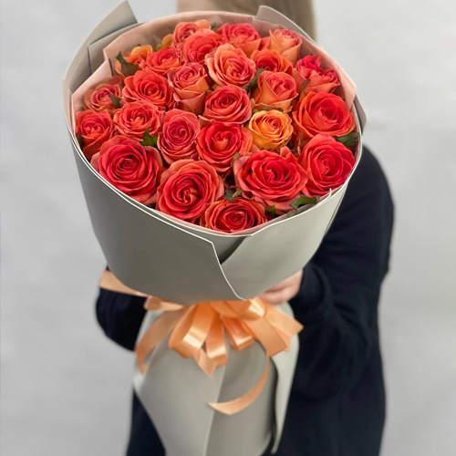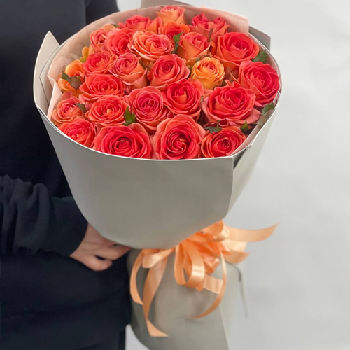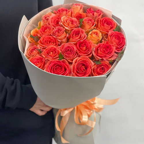 Букет из 25 огненных махровых роз (50 см)
