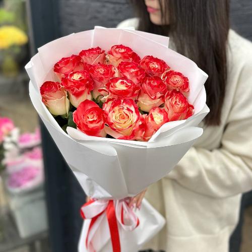Букет из 15 Эквадорских роз "Малиновый рассвет"