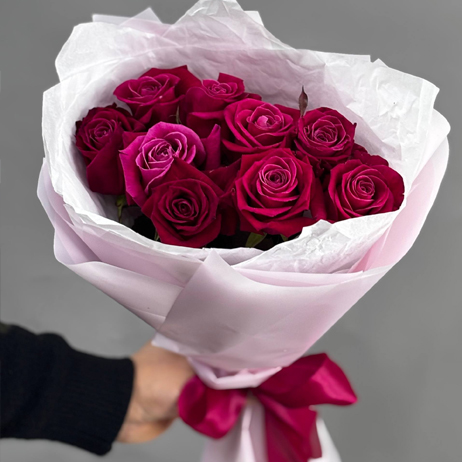 Букет 9 малиновых роз Шангрила (50 см)