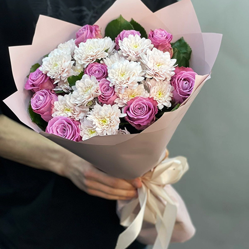 Букет "Мириам" из роз Меритим и хризантем