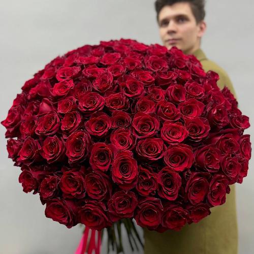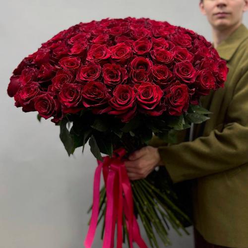 Букет из 101 красной Эквадорской розы Эксплорер (70 см)