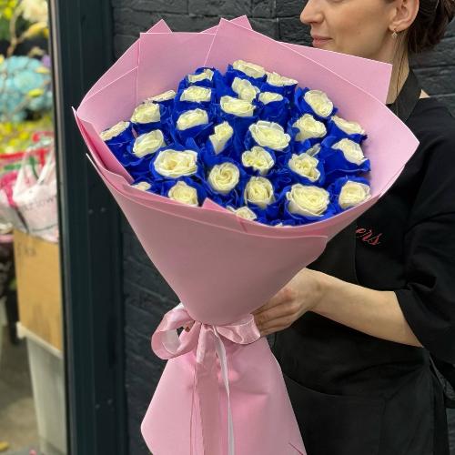 Букет " Морской бриз" из 29 бело-синих роз