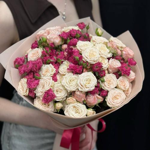 Букет из кустовых роз " Утренняя роса" ( 19 шт 50 см)